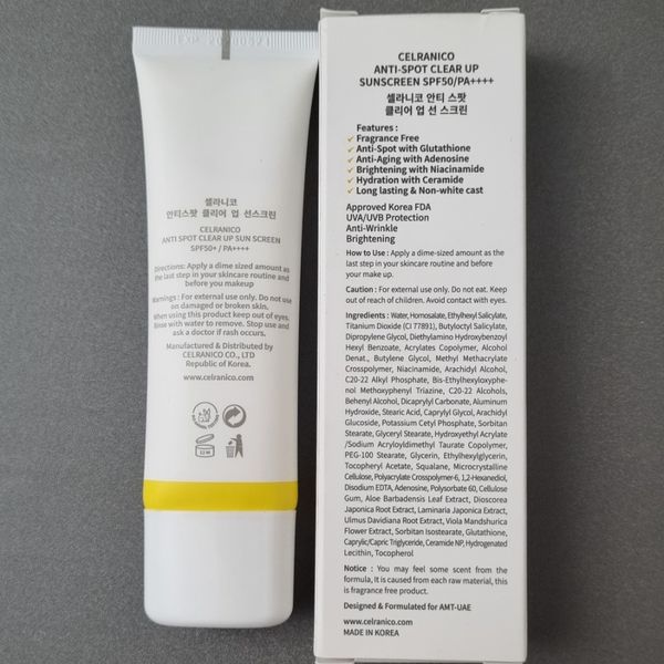 ضد آفتاب ضد لک سلرانیکو (Celranico Anti-Spot Clear Up Sunscreen SPF50+ PA++++)، محصولی کرهای است که با ترکیب محافظت بالا در برابر اشعههای UVA و UVB، مراقبت از پوست را به سطحی جدید ارتقا میدهد. این ضد آفتاب با فرمولاسیون ویژهاش، علاوه بر محافظت از پوست، به کاهش و پیشگیری از لکهای پوستی، روشنکنندگی و آبرسانی پوست کمک میکند.